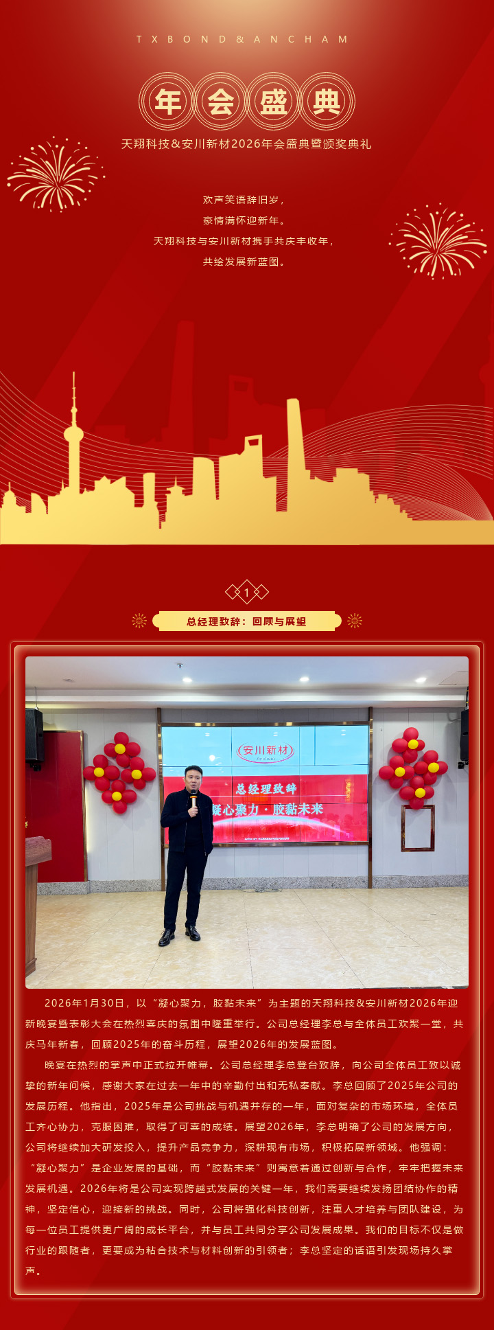 凝心聚力,胶黏未来——天翔科技&安川新材2026迎新晚宴暨表彰大会隆重举行